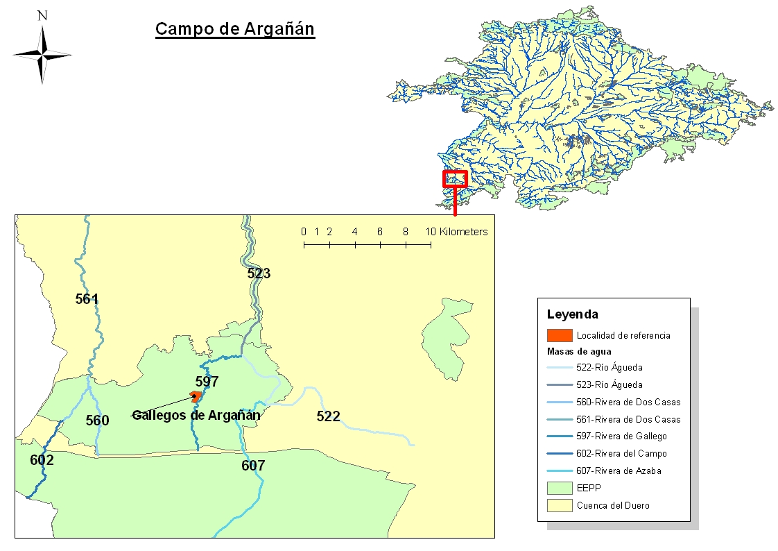 Este Espacio se localiza en las llanuras ocupadas por dehesas, cultivos y pastizales, situadas al suroeste de Ciudad Rodrigo, hasta la frontera con Portugal. El Espacio incluye dos valles por un lado un tramo del río Águeda, con un tramo de sus afluentes el río Riveras de Azaba y el río Rivera de Gallegos; en el otro valle se encuentran el río Rivera de la Mimbre, un tramo del río Rivera del Berrocal y un tramo del río Rivera de dos casas. Este Espacio tienen aguas arriba de estos ríos el Espacio protegido Campo de Azaba, que completa la protección de estos cursos fluviales.