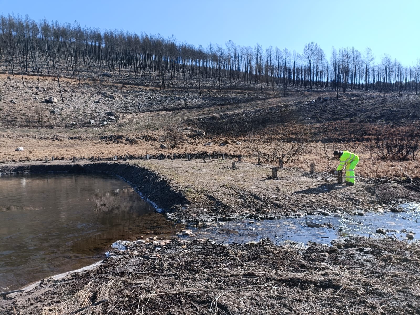 Asimismo, el Organismo ha actuado en aquellas zonas de la cuenca afectadas por grandes incendios como ocurre en la Sierra de la Culebra (Zamora), Monsagro (Salamanca) y Verín (Ourense), donde se ha apostado por constituir una cubierta sobre los cauces y vaguadas afectados mediante vegetación de ribera y propia de la zona.