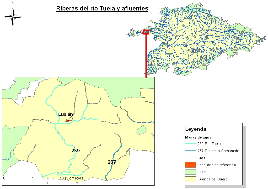 La superficie englobada en este Espacio, la define el cauce del río más una anchura de 25 m. en cada margen a lo largo de los tramos. El Espacio incluye tramos de los ríos Tuela, Baceiro, Gamoneda, Pedro, Pequeño y Leira, y de los arroyos Rivera de anta, Tuiza, Porto de la Meda y Fraga de la Osa, incluidas en las masas con código 239 y 267.