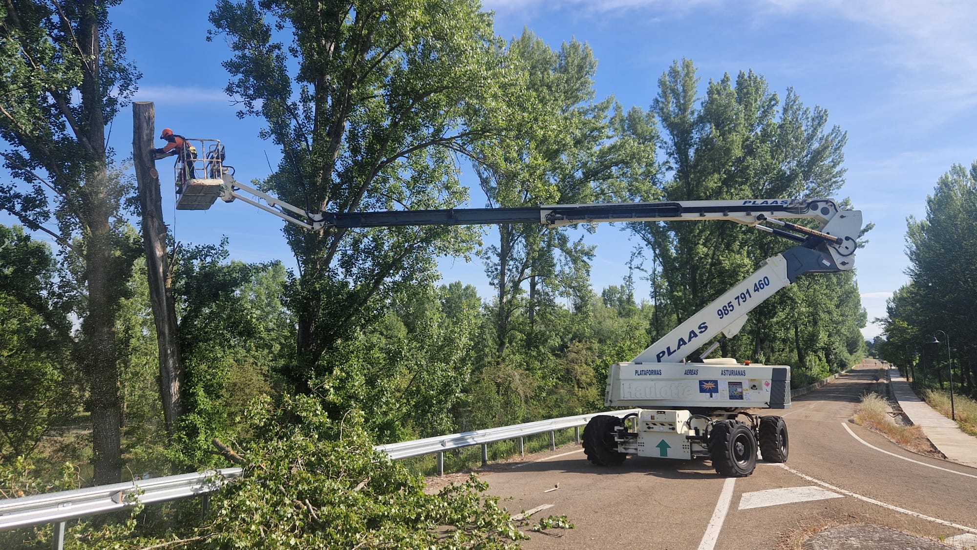 Debido a la cercanía de estos árboles a la carretera, y para evitar el riesgo asociado tanto para los usuarios de la vía como para la propia infraestructura, se ha cortado el tráfico en la carretera LE-213, en el tramo comprendido entre Villarente (N-601) a Gradefes (N-621), permitiendo así la instalación de la maquinaria necesaria para ejecutar la labores y que el trabajo sea realizado de una manera segura y eficiente.