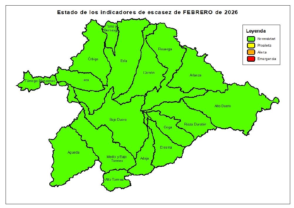 Los mapas de sequía y de escasez para el mes de febrero de 2026 son los siguientes: