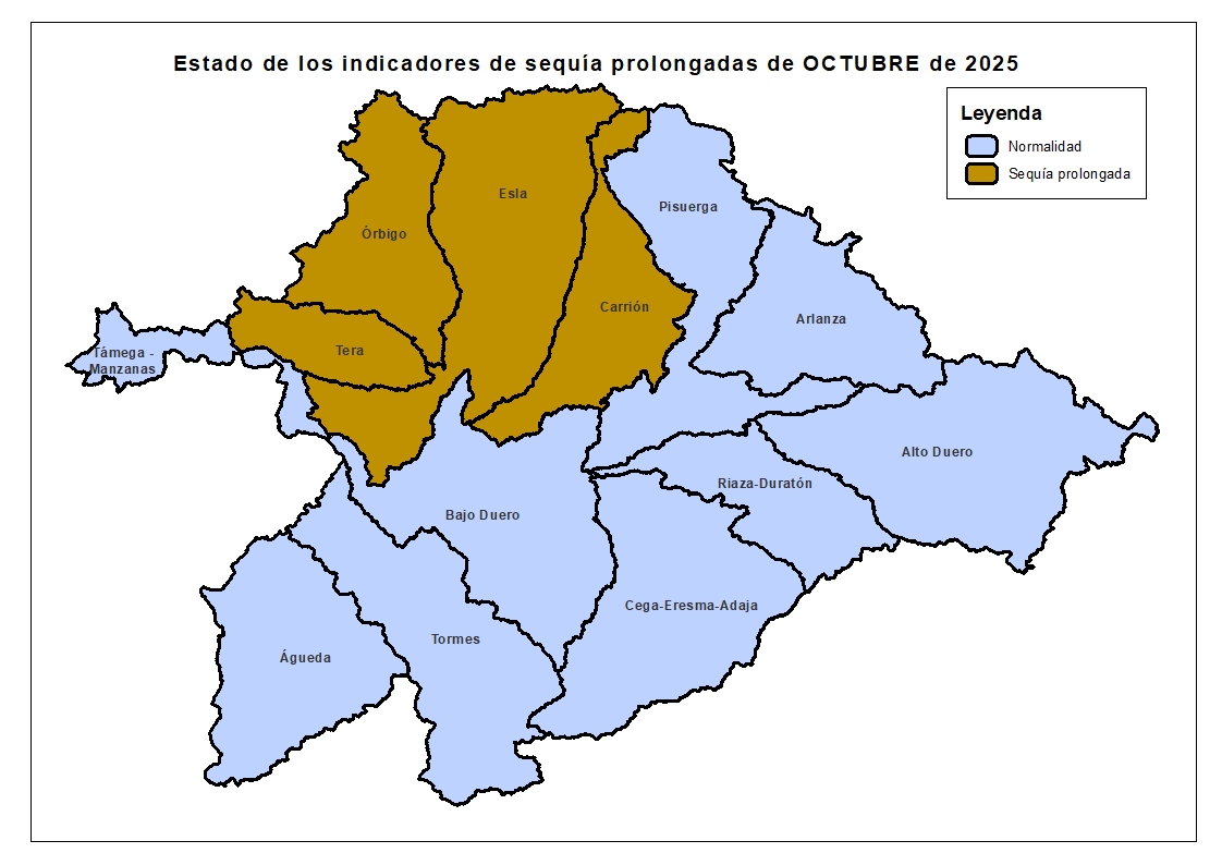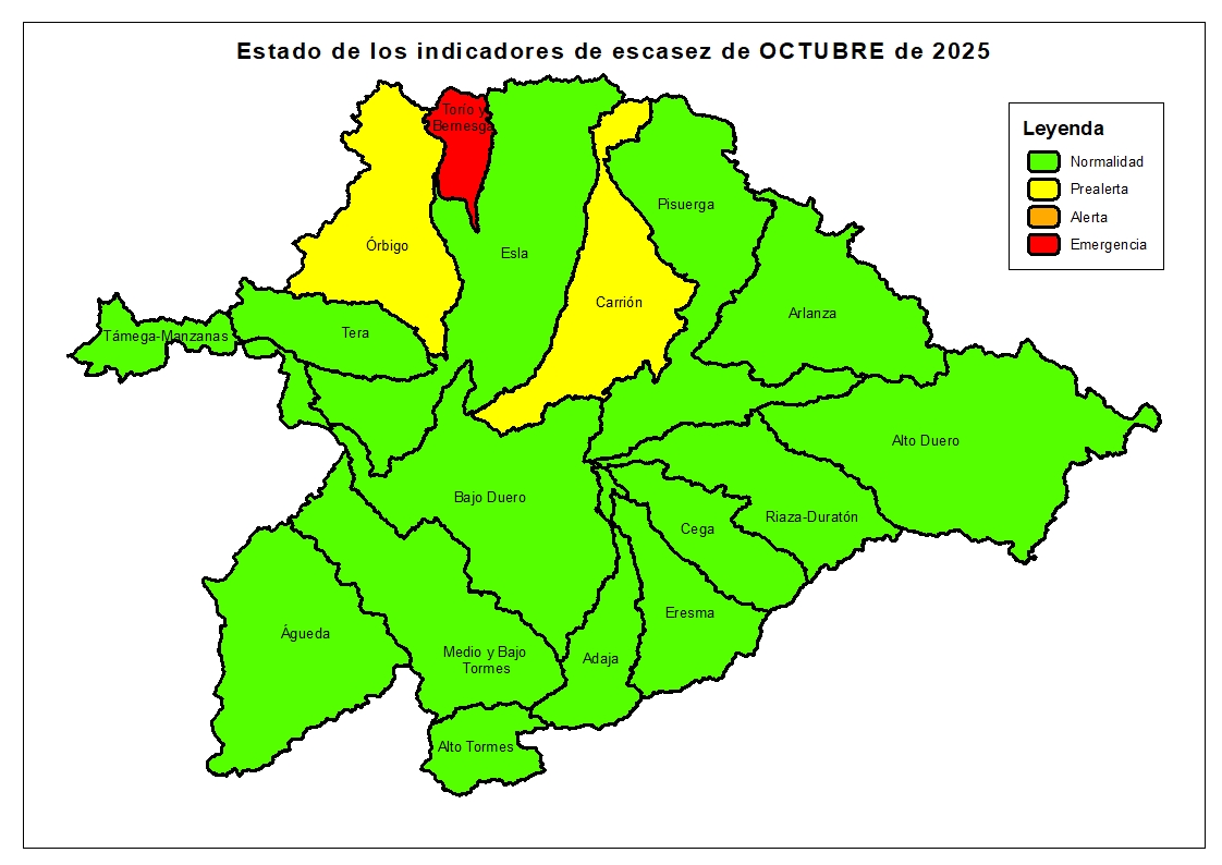 Los mapas de sequía y de escasez para el mes de octubre de 2025 son los siguientes: