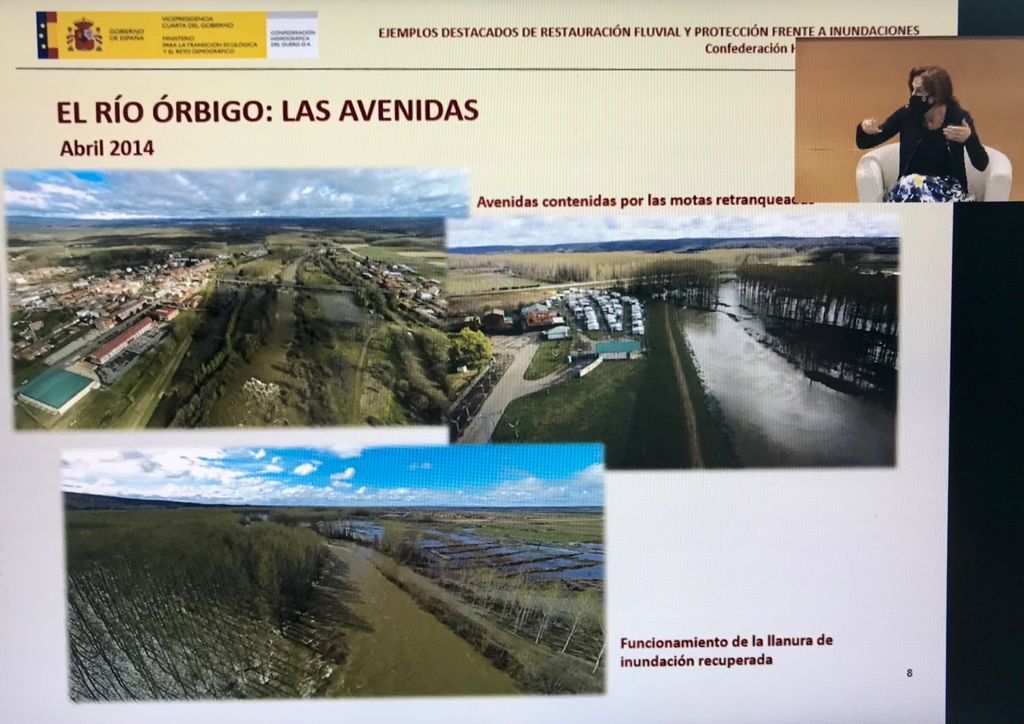 En la Jornada celebrada hoy, la Comisaria de Aguas ha expuesto las distintas medidas desarrolladas por la CHD desde 2007, con el objetivo de anticiparse y minimizar los efectos de las avenidas en la cuenca. Entre ellas, destaca el caso del Órbigo, la primera actuación que aborda el río de forma global, en su conjunto, con soluciones innovadoras basadas en la naturaleza para incrementar la conexión entre el cauce y sus riberas.