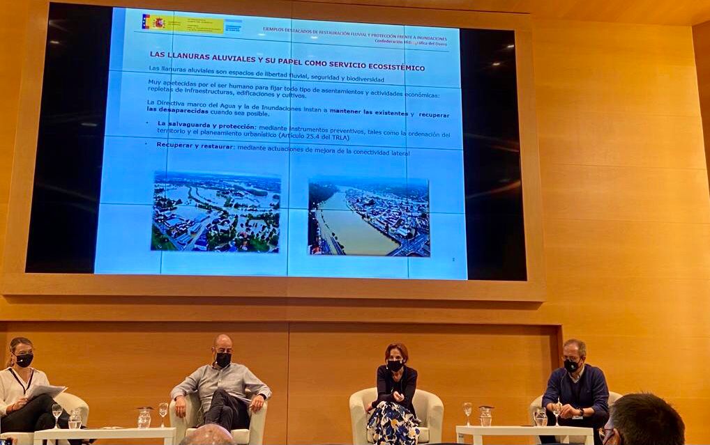 La Confederación Hidrográfica del Duero (CHD), organismo autónomo adscrito al Ministerio para la Transición Ecológica y el Reto Demográfico (MITECO), ha eliminado 80 kilómetros de motas y recuperado 16 kilómetros de tramos de río, en más de cincuenta actuaciones de restauración fluvial y protección frente a las inundaciones llevadas a cabo en la cuenca, en los últimos catorce años (2007-2021). Así lo ha destacado hoy la Comisaria de Aguas, Diana Martín, en la Jornada de presentación de los Planes de Gestión del Riesgo de Inundación (PGRI) de las distintas demarcaciones hidrográficas, organizada por el MITECO, a la que ha asistido la presidenta del Organismo, Cristina Danés.