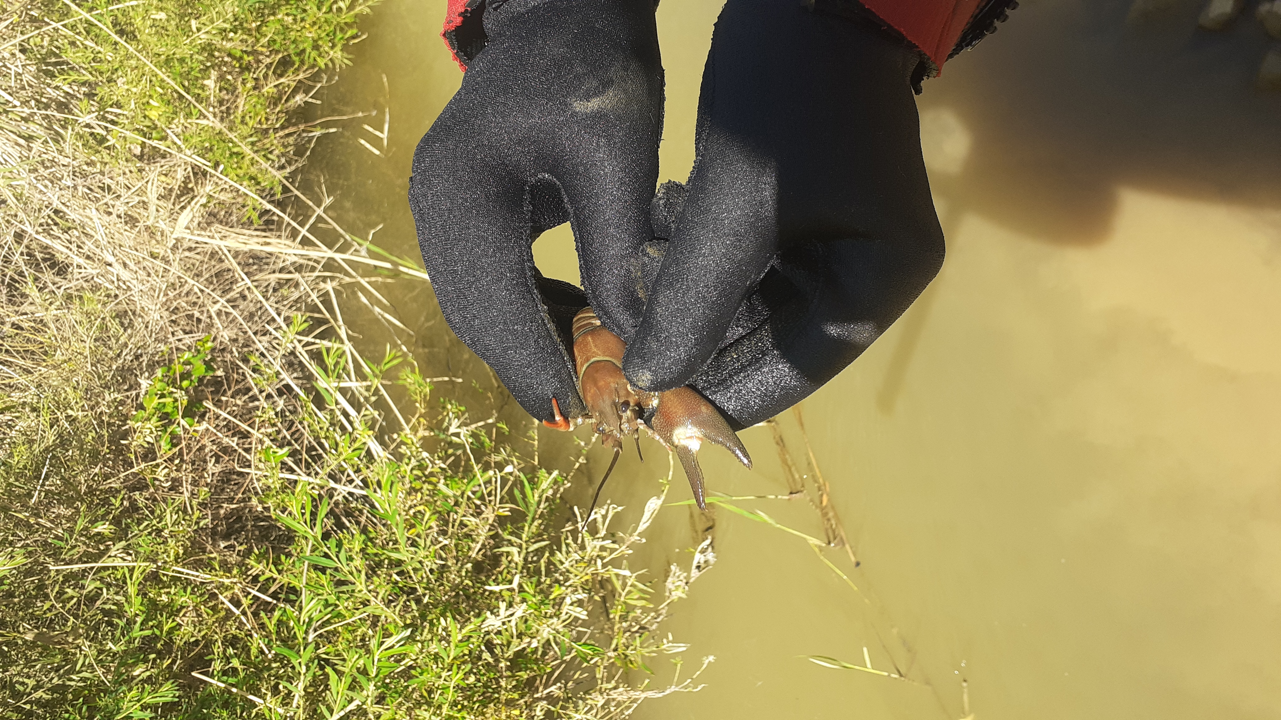 El cangrejo rojo americano Procambarus clarkii es un voraz depredador que llegó, también introducido, desde el centro y el norte de América y su presencia puede causar daños a diversos cultivos como el arroz, así como diversos daños ambientales ya que degradan el medio que habitan y compiten con otras especies por sus recursos.