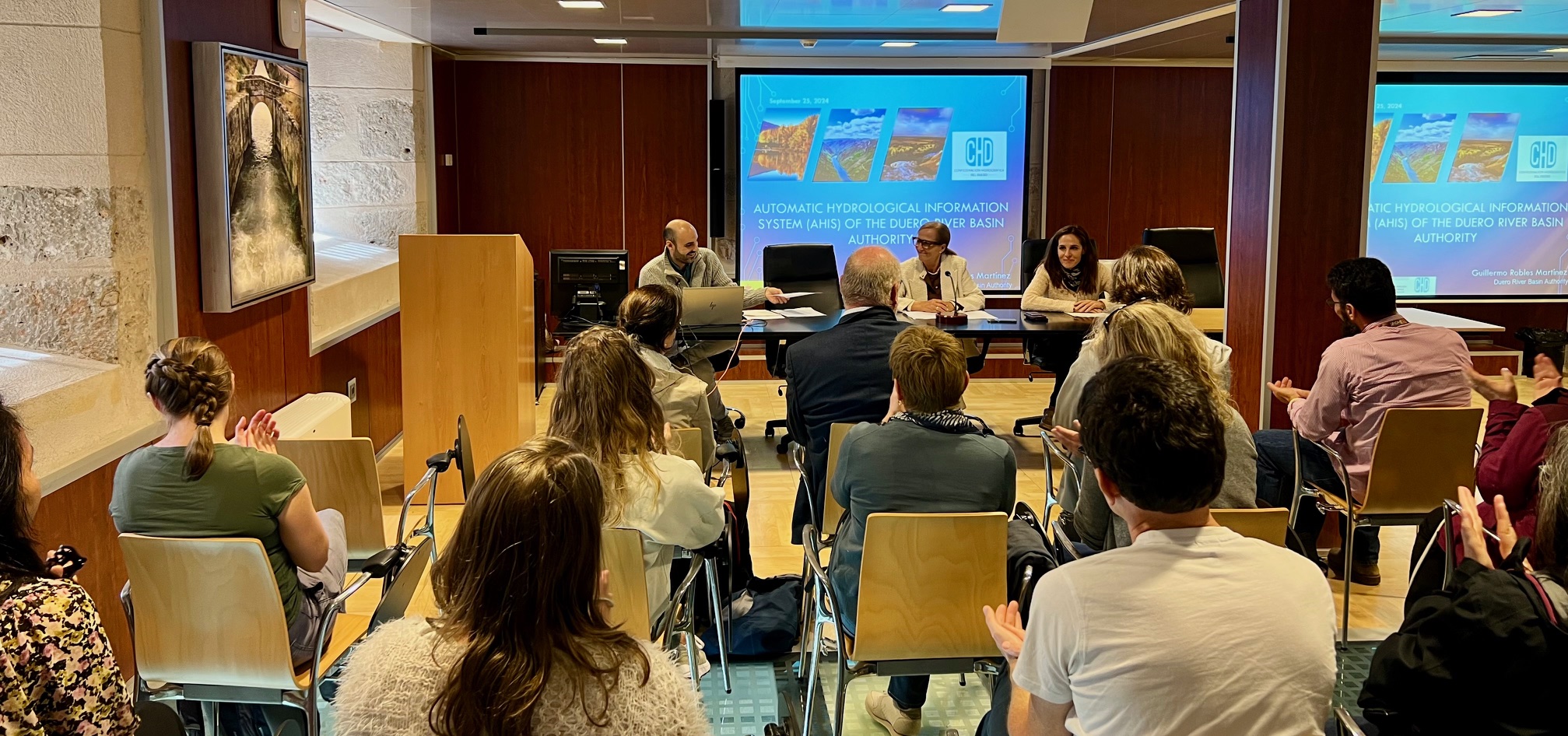 Los integrantes del proyecto STARS4Water han conocido in situ las funciones del Sistema Automático de Información Hidrológica (SAIH) de la CHD, que constituye actualmente la principal herramienta de observación de datos hidrológicos y meteorológicos en tiempo real, tanto para las tareas de control y vigilancia de cauces en ríos, como para la detección en tiempo de posibles situaciones extraordinarias, lo que permite activar los protocolos de comunicación previstos hacia las distintas entidades involucradas en la gestión de episodios de avenida o sequía.