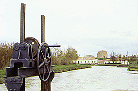 Las primeras obras que se localizaron en las cabeceras de los tres ramales son las retenciones. Se trata de construcciones que mediante un sistema más o menos complejo de compuertas, regulan el caudal de agua que se precisa en cada momento. Se construyeron cuatro retenciones, dos en la cabecera del Ramal del Norte y las otras dos en el de Campos.